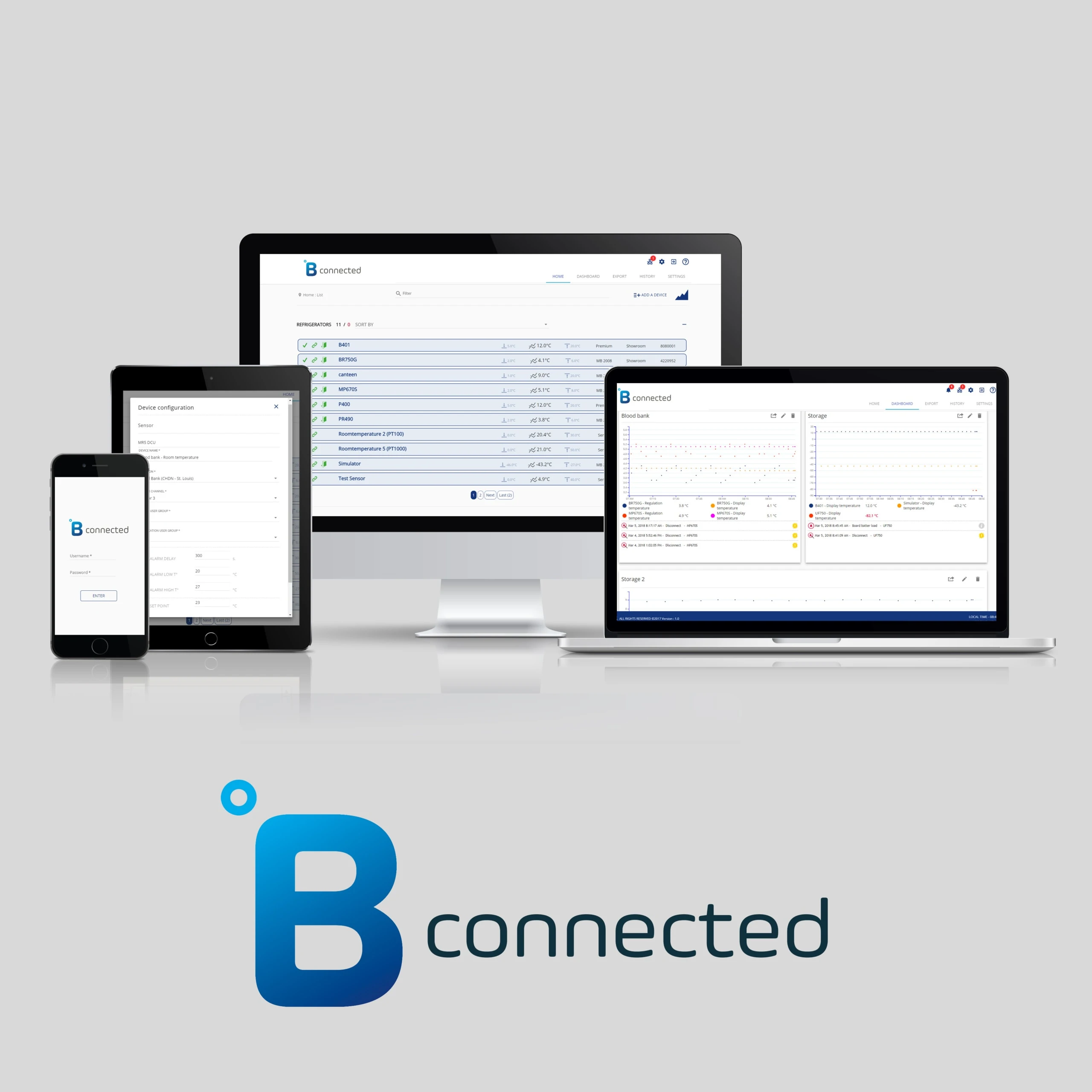 - Toutes les données sont enregistrées et sauvegardées dans le stockage interne de la DCU et dans la base de données de °B Connected si celui-ci est connecté